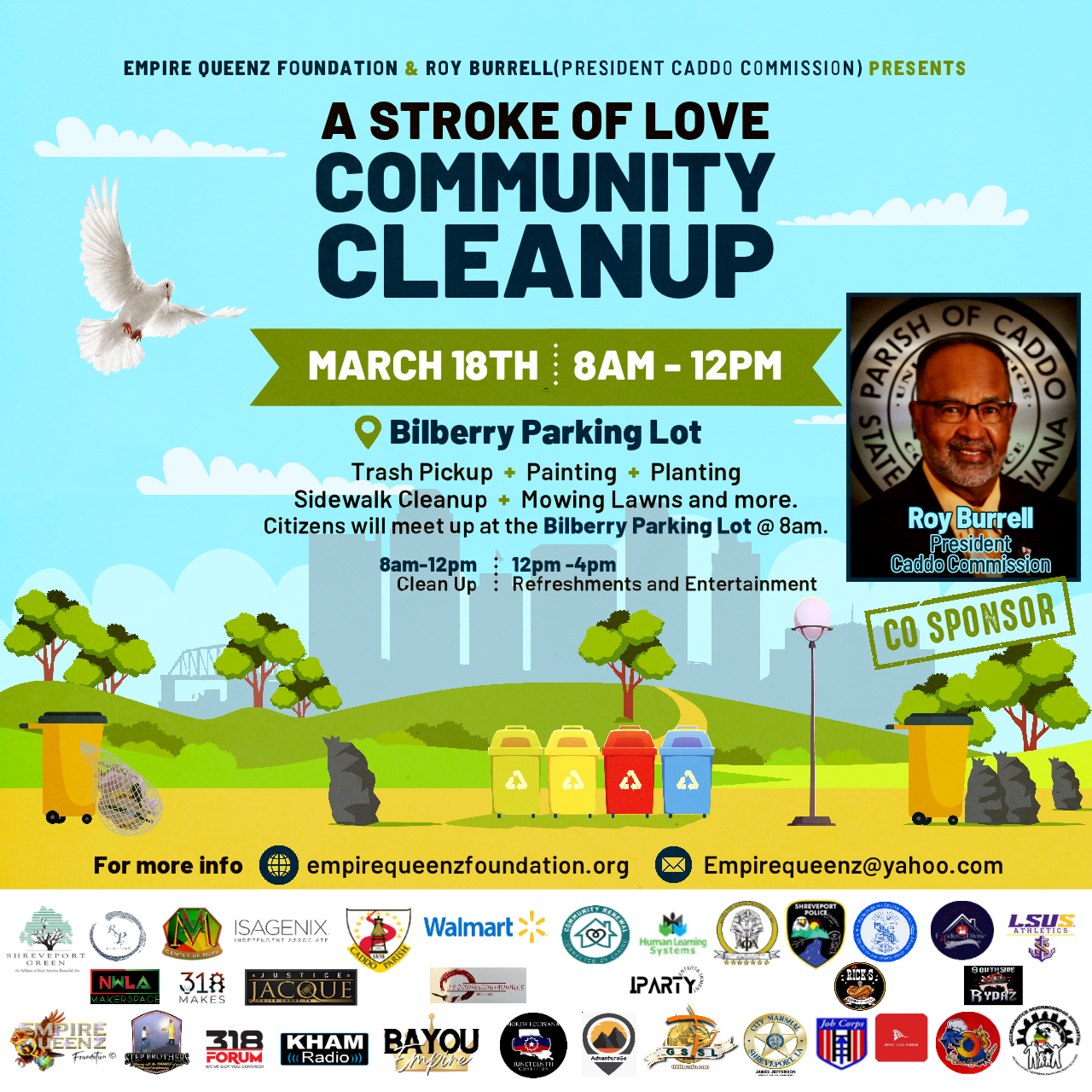 Citizens will meet up at 8AM at the the Bilberry Parking Lot to retrieve supplies and instructions. Team Captains will give a map with information and we will begin the clean up and report back at 12:30pm for lunch.